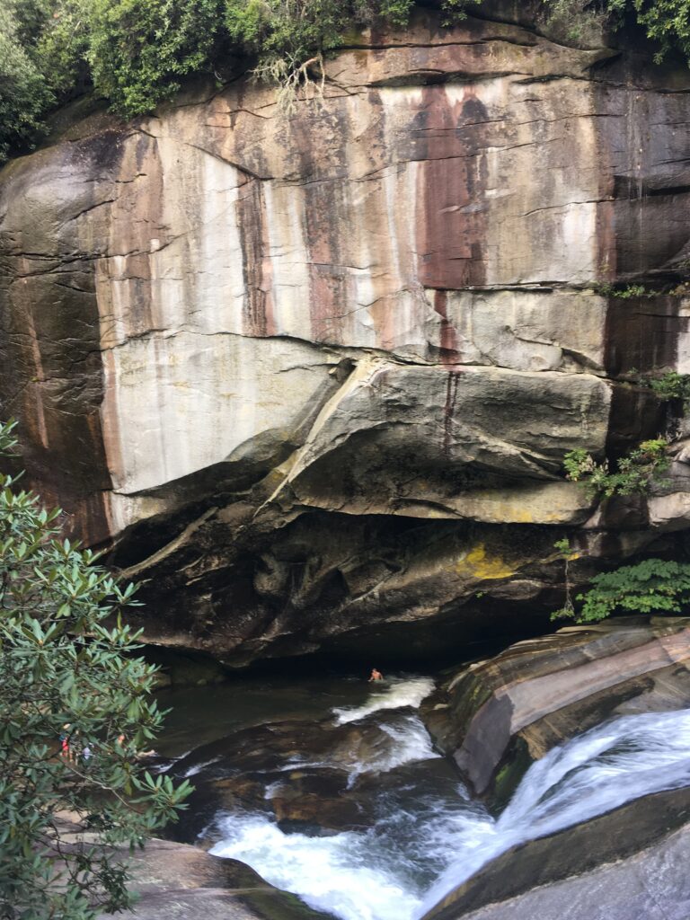 Silver Run is a hidden gem just south of Cashiers, NC. The name comes from the glittering mica in the sands. The hike is short and nearly flat. Some stone stairs are at the end. It’s not paved, however, and so it’s not recommended for those who aren’t able-bodied.